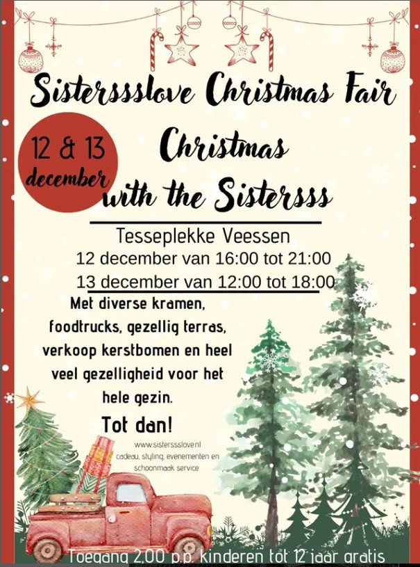 Op vrijdag 12 en zaterdag 13 december 2025 wordt Tesseplekke in Veessen omgetoverd tot een betoverende winterwereld tijdens de Sisterssslove Christmas Fair. Deze sfeervolle kerstmarkt staat helemaal in het teken van warmte, gezelligheid en samen genieten — een magische start van de feestdagen. ✨ Beleef de magie van kerst Zodra je het terrein aan de […]